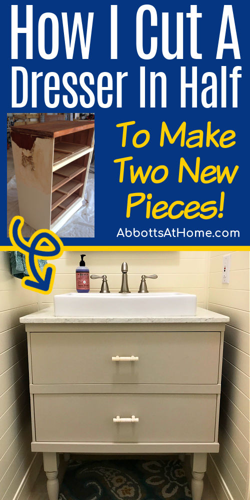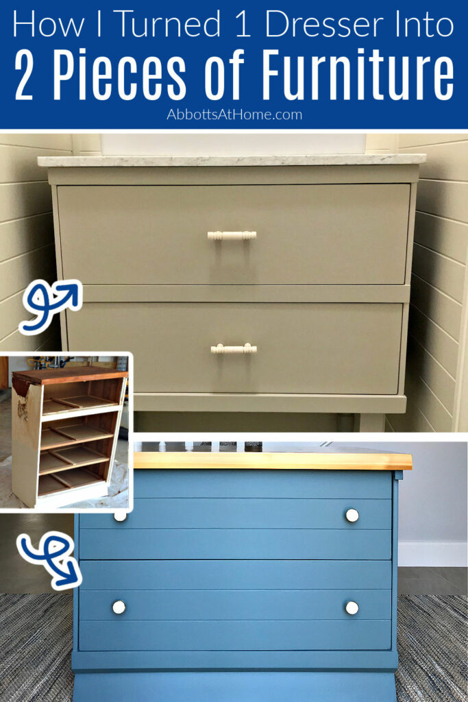 Easy DIY steps for how to cut a dresser in half to make 2 great pieces of furniture. This before and after furniture makeover is JUST WOW!