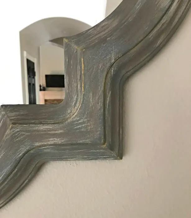 Image showing wood damage repaired with Bondo. For a post with steps and video showing how to fix wood furniture damage.