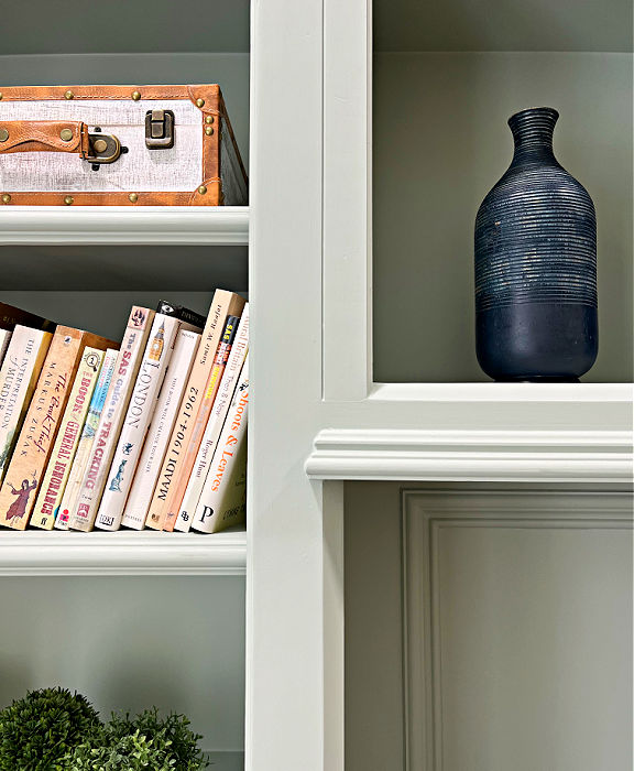 Adding that detail between open areas visually joins the cabinets together, making it look like one large piece of built in furniture