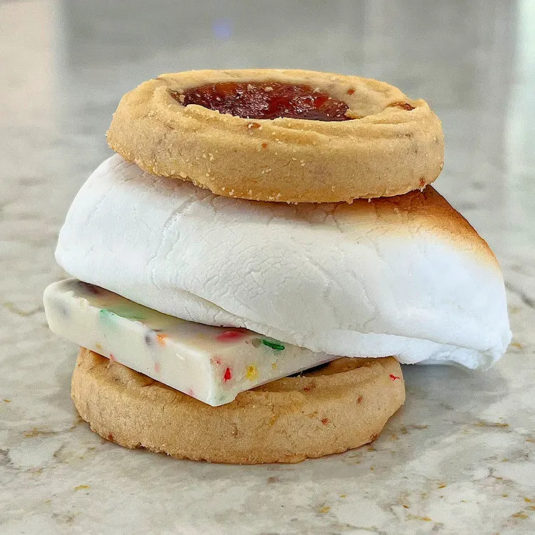 26. Jam Thumbprint Birthday Cake Candy Bar Smores