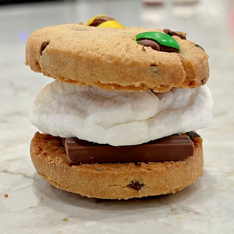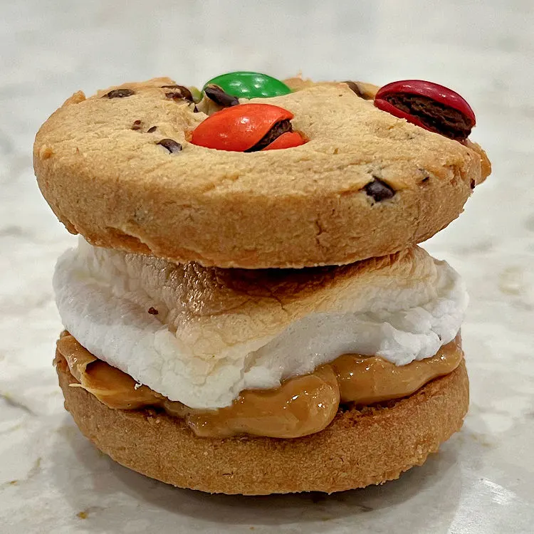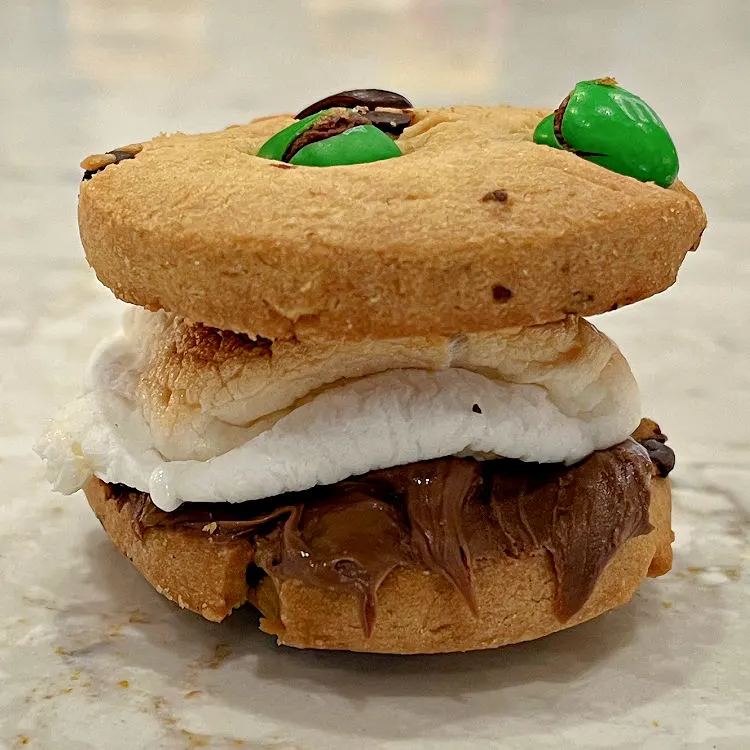This tasty Smores combines marshmallow with Nutella chocolate hazelnut spread on M&M cookies.
