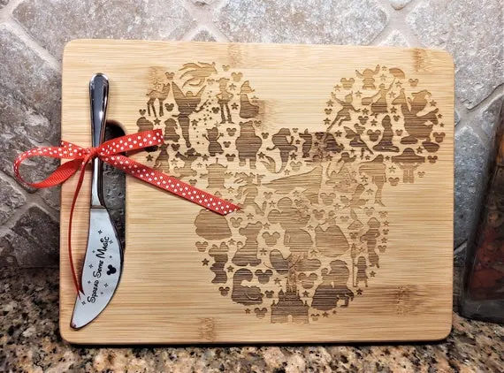 Mickey Mouse Head W/ Disney Characters Engraved Wood Cutting | Etsy