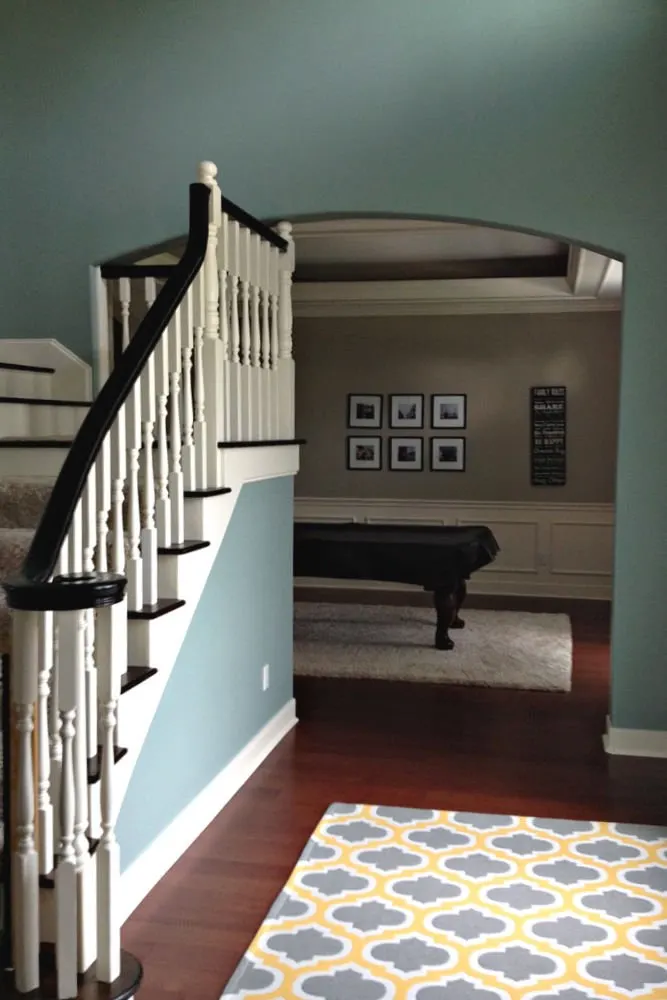 Alright, let’s move onto what the two story foyer looks like after I closed off that arched opening to the Family Room. The opening was SO BIG that there was no room for furniture in that large foyer.