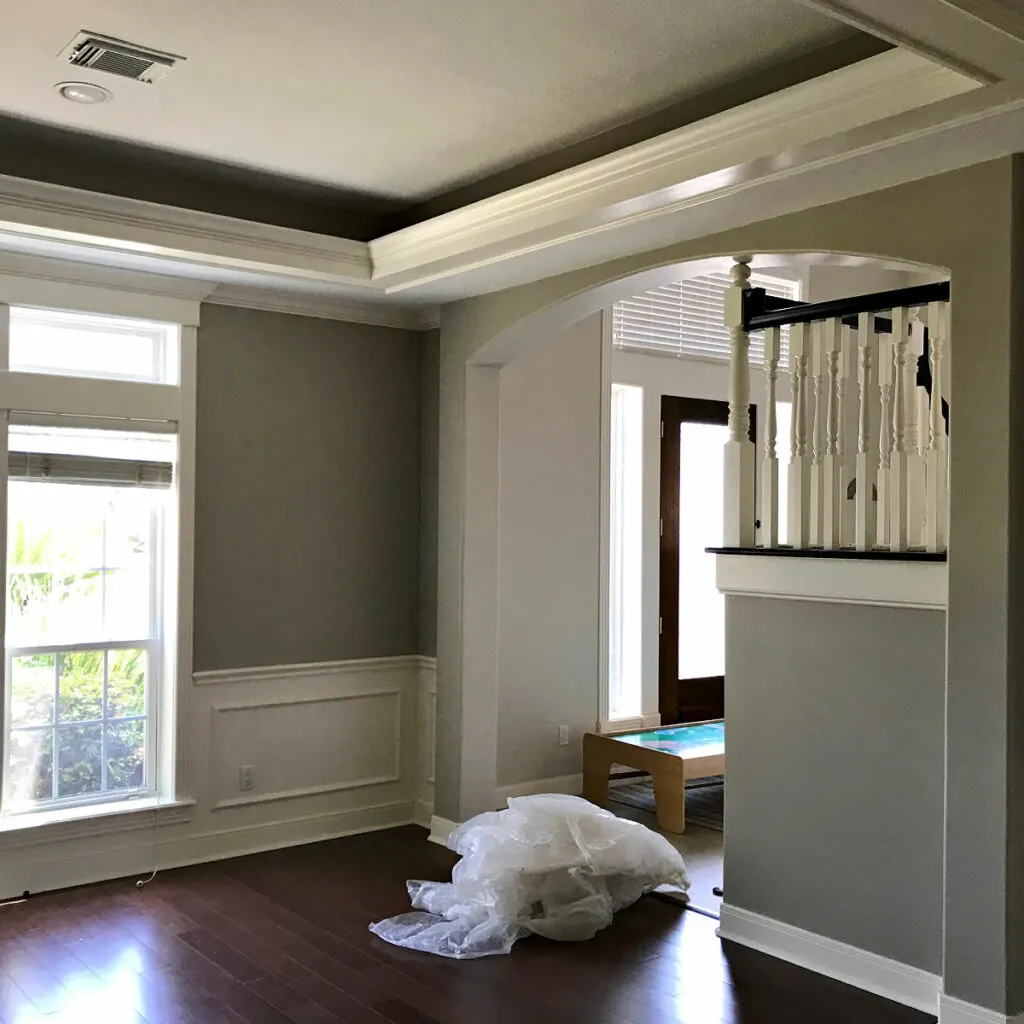 And, instead of adding on to the already nice tray ceiling, I amped the style up with Eggshell Sheen paint instead.