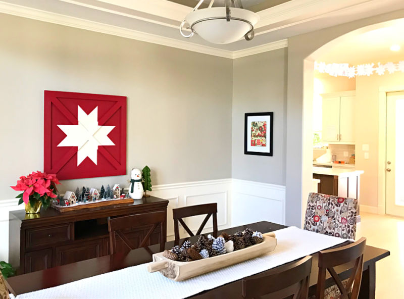 And, I also installed this Easy DIY Coffered Ceiling Idea on the ceiling in there. The Dining Room is the first room you see when you enter my home. So, I wanted a beautiful ceiling feature to add a Wow Factor.