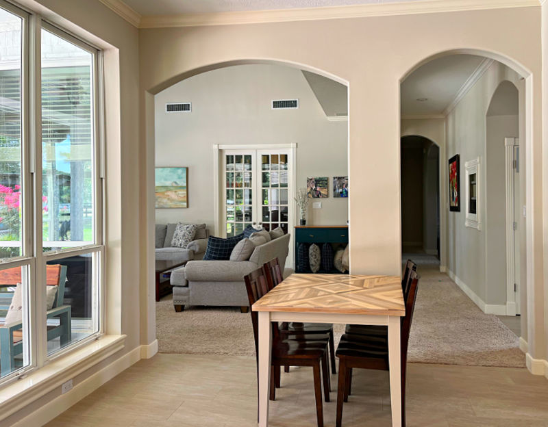 The chandelier over the breakfast table really limited where I could put our table. So, I had that light fixture removed and changed the layout to improve the flow.