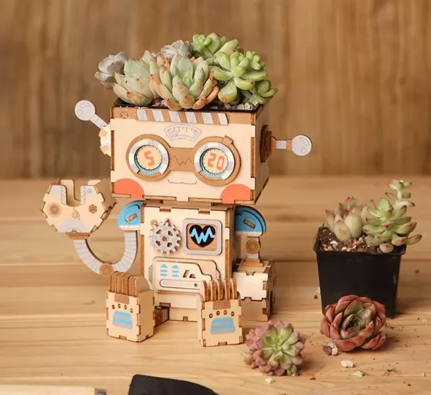 3D Wooden Puzzle DIY Kit Succulent Mini Pot Robot Bunny Puppy - Etsy