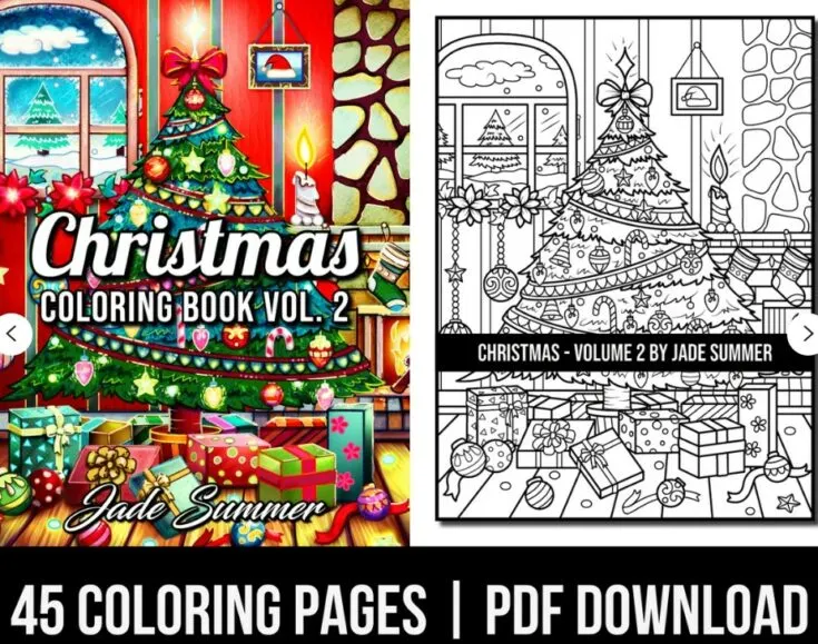 Download 45 great Christmas-themed coloring pages that can be printed whenever your friend wants to color. I LOVE detailed coloring pages as a last minute gift for parents, teens, adults, and even kids that are into long coloring projects.