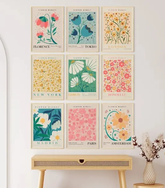 Flower Market Print Set of 9 Botanical Wall Art Floral - Etsy