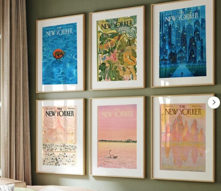 This Etsy shop sells this beautiful set of digital New Yorker Magazine covers and a few other sets. You can find one to match any room.