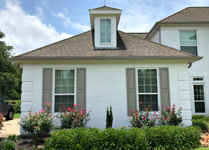 I hired out the house painting, while I handled ordering and painting our new vinyl shutters. I went with PAINTABLE raised panel vinyl shutters I found for a deal on Amazon.