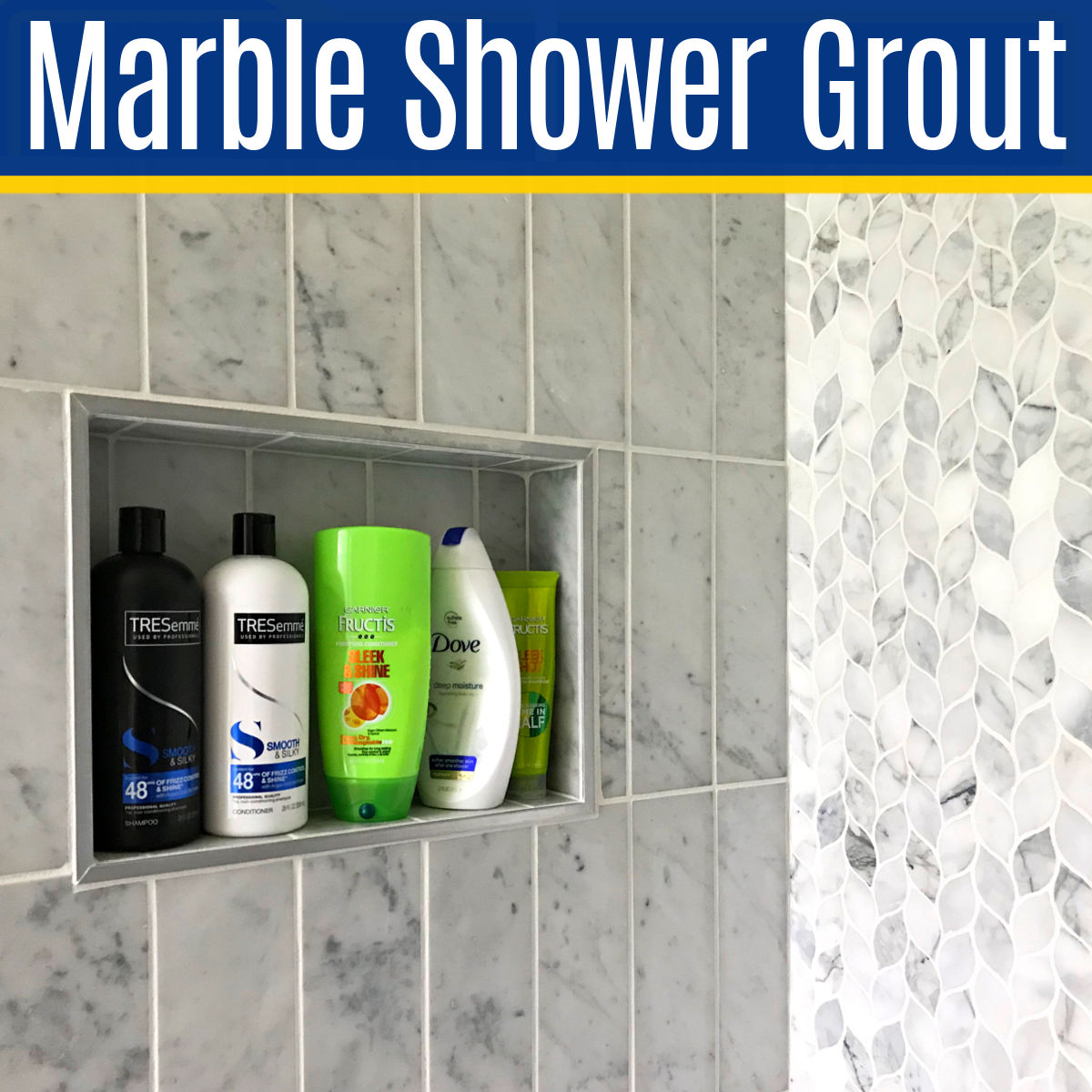 Wondering how to clean marble shower grout & tile? These EASY steps kept my shower looking NEW for 5 years. With tips to whiten grout too!