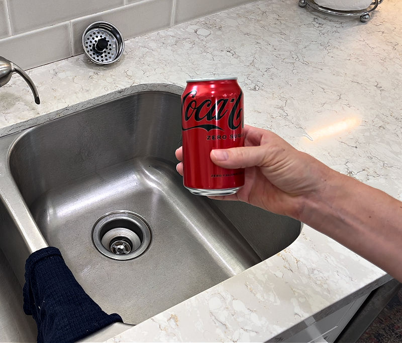 Next up, you might be able to clear a clogged sink with Coke or Pepsi. Any sodas (typically dark sodas) with Phosphoric Acid would work.
