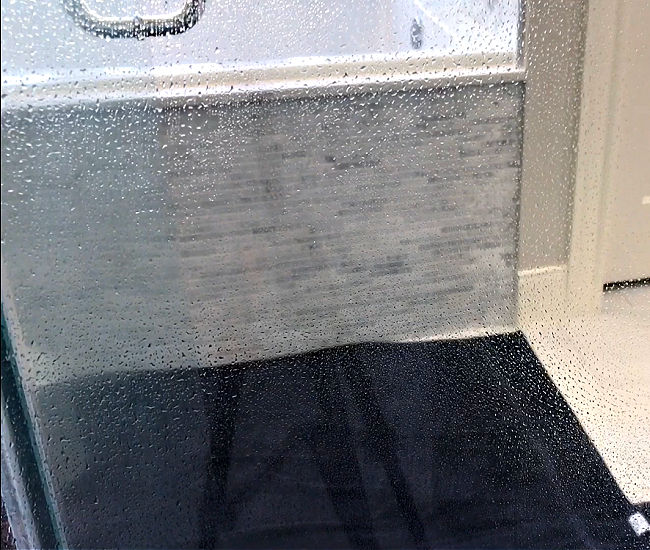 Here’s a look at the smaller amount of hard water stains left on the door after using the vinegar.