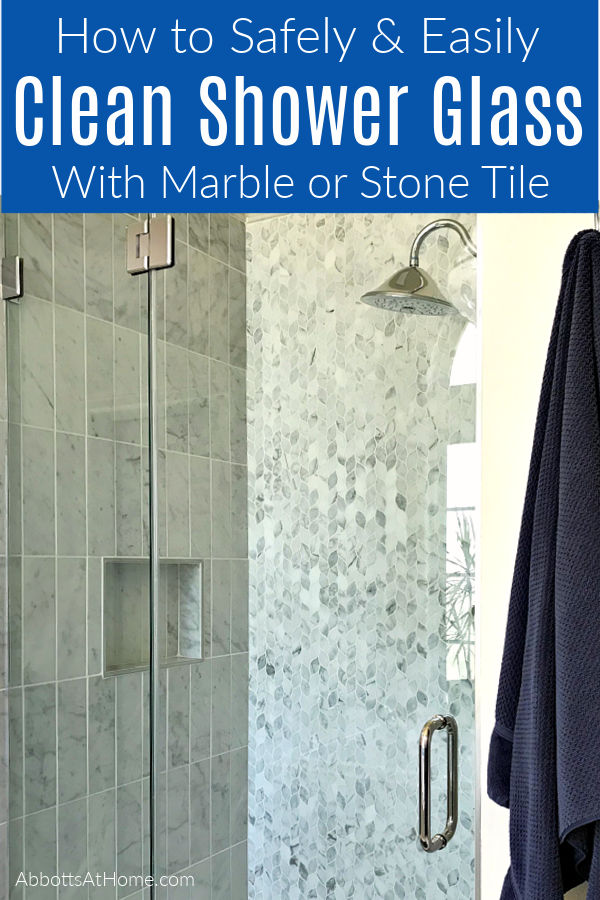 You can quickly and safely clean a shower glass door with marble or stone tile using vinegar & backing soda. But, be careful doing it! Vinegar can etch, stain, and pit your marble and stone tile. Here's a step by step guide to how to clean your glass shower door without damaging your tile.