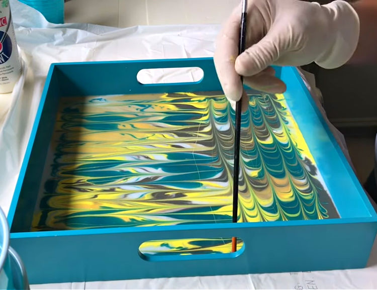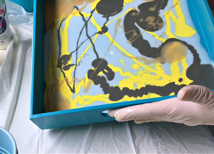 DIY Tip: Make sure you have multiple colors mixed around the tray to give the best result. And you want the resin to be about 1/4″ deep so that you can create a pattern.