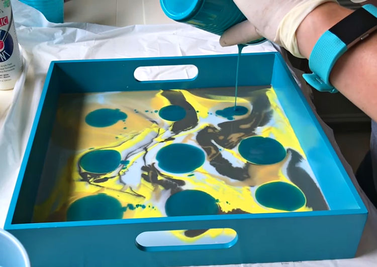 For this DIY Resin Tray idea, you could also just pour or drop circles of random color around.