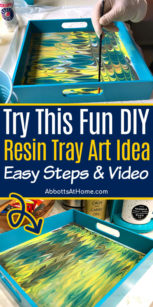 When you watch the video, you’ll see that I created this DIY Resin Tray Art by dragging lines through the resin to recreate a popular marbling pattern. It’s one of my favorites!