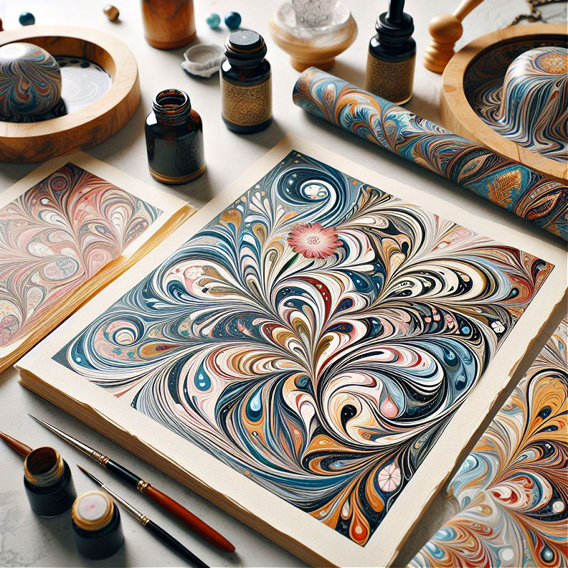 I love Ebru Marbling patterns on paper. You might have seen ebru marbling inside older books. Seems like they were always on the inside covers of Readers Digest when I was a kid.