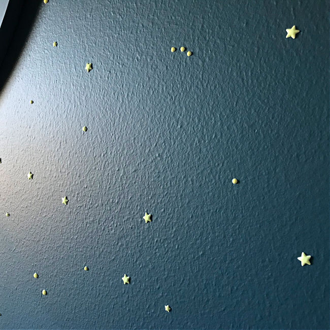 I spaced the constellations out across the wall. Finding the different constellations is a bit of extra fun for the kids at bedtime.