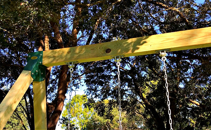 I was able to build this heavy-duty swing set in just an hour, working alone. The swing set brackets I used come with the hardware needed to build the DIY swing frame.