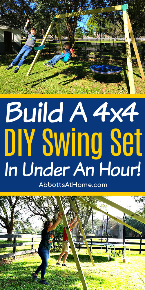 I built this swing set in less than an hour, by myself, with minimal tools. You can too! Keep scrolling to see how to build a swing set frame.