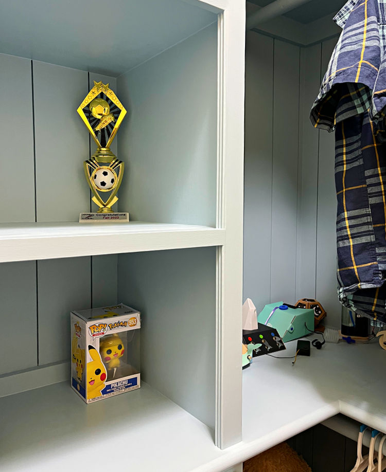 BUT, I don’t mind using a little wood glue on trim pieces like this. It won’t make the unit any harder to take apart one day.