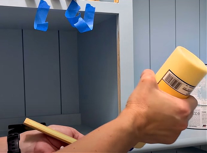 That also means I have less nail holes to fill and hide. I use painter’s tape to hold it tightly in place while the wood glue dries. I’ll go over that in detail, in the section below.