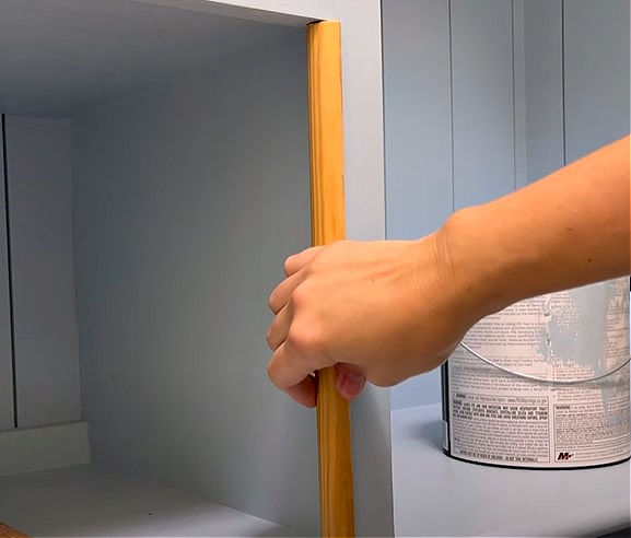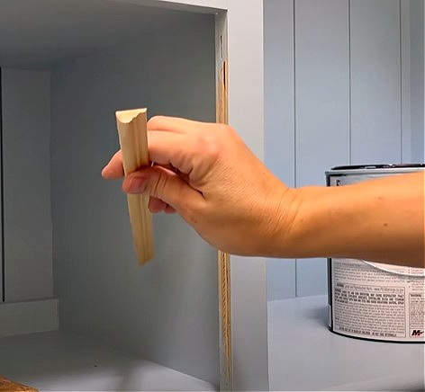 This size trim is great for inside edges of bookshelves and open cabinets or on the front edge of shelves. All of the trim below should be available in most Lowe’s and Home Depot’s.