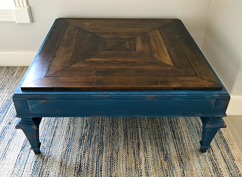 In fact, this sweet DIY Coffee Table Makeover has been sitting in my guest room for years waiting for a new home. It looks great, but it’s size is better for an apartment-sized Living Room.