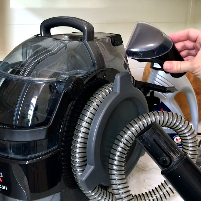 The video also includes a look at how quick and easy it is to set up the Bissell Spot Clean Pro before cleaning. And, how easy it is to empty out the dirty water tank and clean the machine.