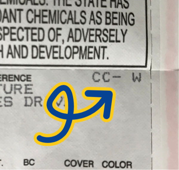 Sometimes the label on your couch won’t have the words “Cleanability Code”. It might just say “CC”. My new couch just has “CC- W” in an unmarked spot on the label. That is it’s cleanability code.