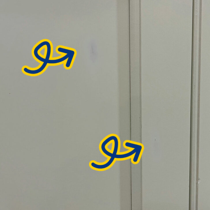 Here’s 2 spots on my cabinets where I accidentally rubbed the finish off of my cabinets by gently scrubbing it with a Magic Eraser.