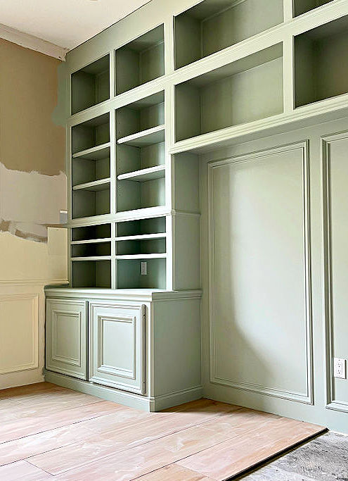 That beautiful baseboard looks great on these office built in cabinets.