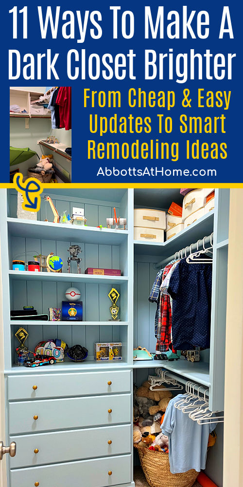 These ideas work! Here’s 11 great ways to light up a dark closet. From QUICK & EASY updates without wiring to bigger closet lighting ideas.