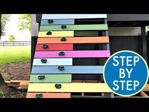 how to build a fun DIY Rock Climbing Wall for a Kids Play Set, Bed, Loft, and more. Step by step tutorial and how to video to help you make your own.
