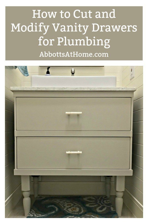 Must see tips and steps to convert furniture into a bathroom vanity. With DIY steps to cut and modify vanity drawers for plumbing.