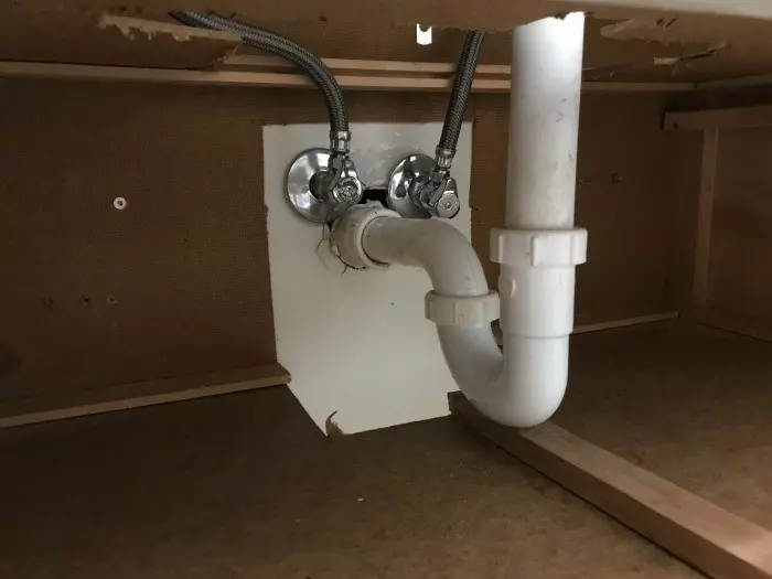 - After the sink and plumbing is installed, measure the width and depth of the plumbing, and possibly sink, for each drawer. Add 1 1/2" around the plumbing to make sure your drawer will be well away from the plumbing.