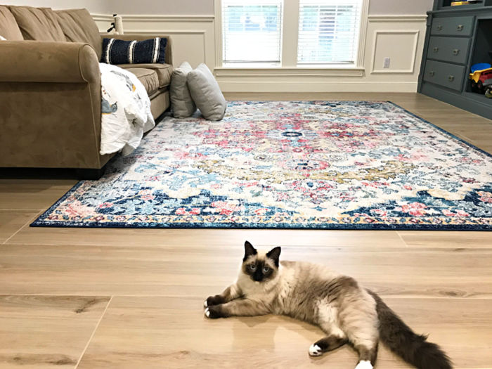 That’s it for removing adhesive from concrete. Here’s a look at this room after I finished the full remodel on it. You can see the full Before and After Family Room Makeover in another post.