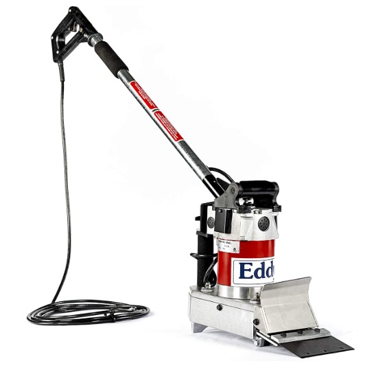 The next option for removing adhesive from concrete that I want to tell you about is with a plug-in, big multi-purpose floor scraper that you can rent from your local tool rental company.