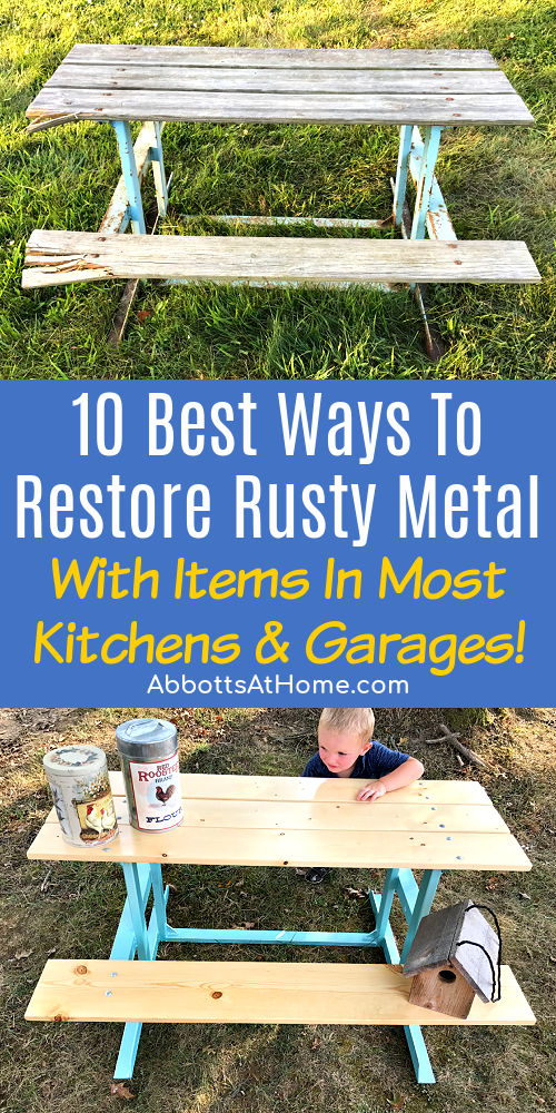 I have 10 proven ways to remove rust from metal furniture, metal parts, and tools. Some of these work faster than others. Some of them are better for small items like tools.