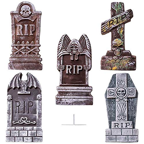 17” Halloween Foam RIP Graveyard Tombstones (5 Pack), Headstone Decorations