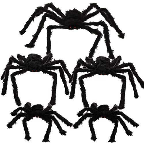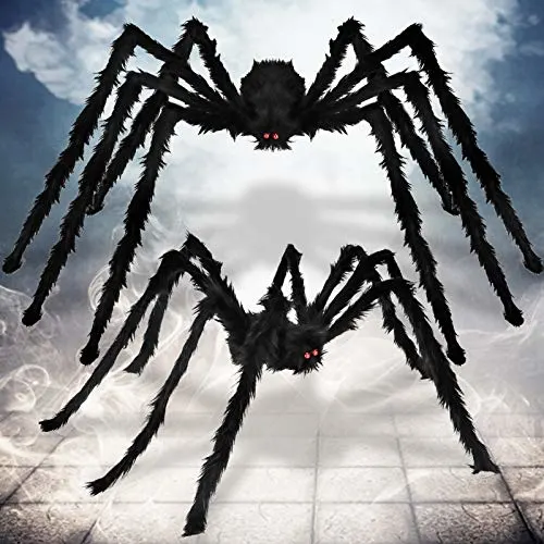 2 Pack Halloween Spiders, Hairy Giant Spiders (6.5 FT + 5 FT)