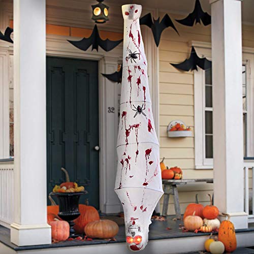 72 Inch Hanging Cocoon Corpse Skeleton with red eyes and spiders