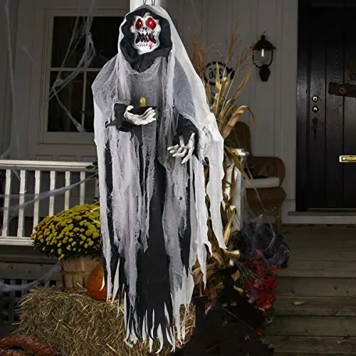 5 Ft Animated Life-Size with Red Eyes and Creepy Shrilling Sound Grim Reaper