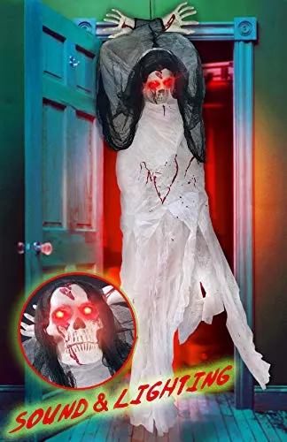 35" Halloween Animated Hanging Corpse with LED Light Up Eyes & Sound Effect