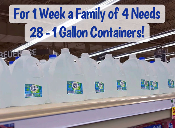 Let’s go over some quick emergency water storage math. Since you need 1 gallon of water per person, per day, you’ll need 28 gallons of water total for a family of four.