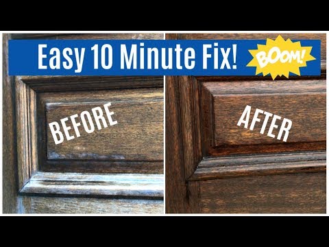 As I rubbed it into my weathered wooden door, the white heat haze completely disappeared and the finish started looking rich and shiny again. You can see how quickly it happens in the video below.