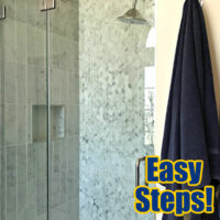 I LOVE this EASY way to clean glass shower doors with vinegar & backing soda! And, it’s safe on marble & stone tiles. Easy steps & video.