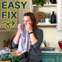 3 EASY ways to get the sweat smell out of shirts and gym clothes using 2 natural ingredients or 1 of my favorite clothes cleaning products!